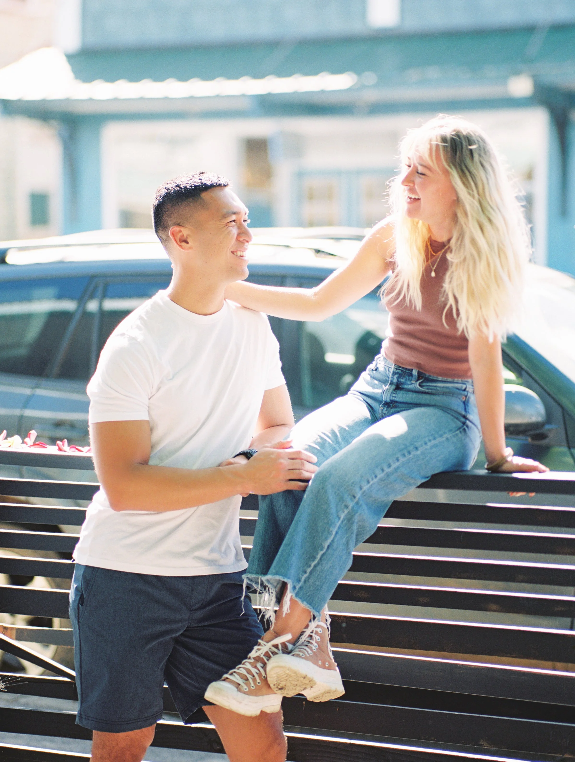 An in town session is also a great option if you would like to have a fantastic variety of images in your gallery. As you will see in the photos below the beautiful couple and I took advantage of all that Paia had to offer with photos in front of the cute shops/murals, added in a shaved ice photo break into the mix, and even a few captures hanging out in beach park next to town as well as the beach itself. Overall what an incredible fun way to document your time here in Hawai’i !